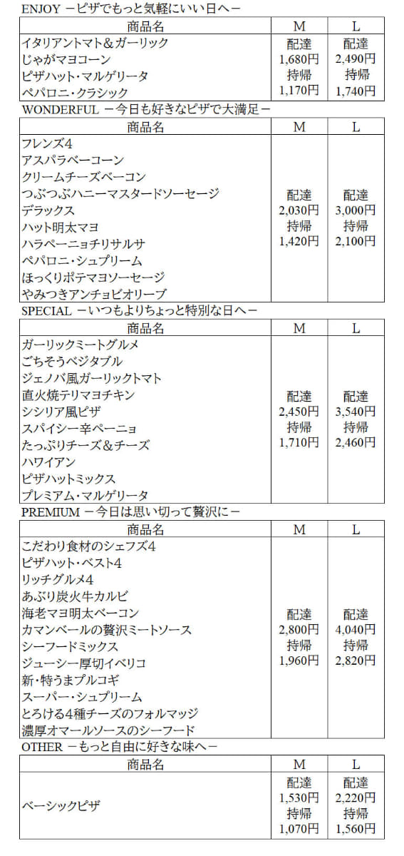 ピザハット、価格改定で別途配達料なし・持ち帰りは30%オフ