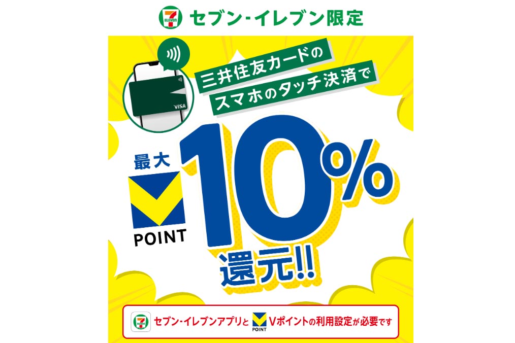 三井住友カード、セブンイレブンで「Vポイント」10%還元
