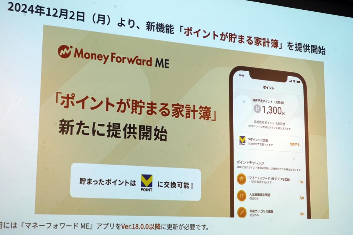 マネーフォワードME、「ポイントが貯まる家計簿」でVポイントを自動付与