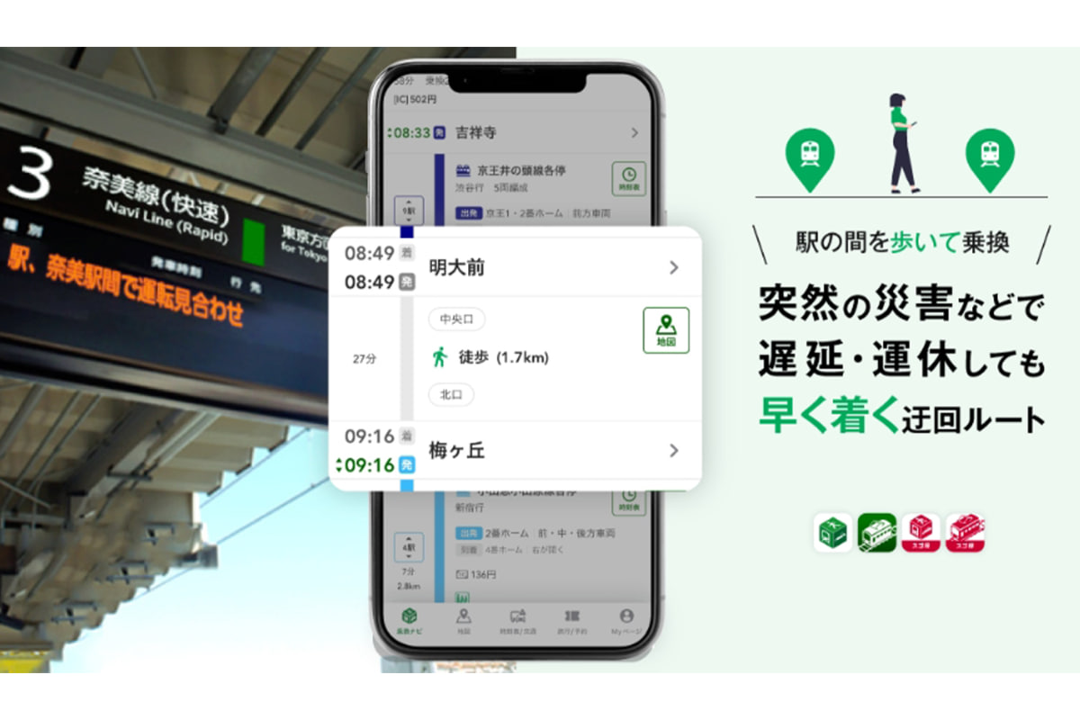 乗換NAVITIME、「早歩きで1本前の電車に乗れる」経路を提案