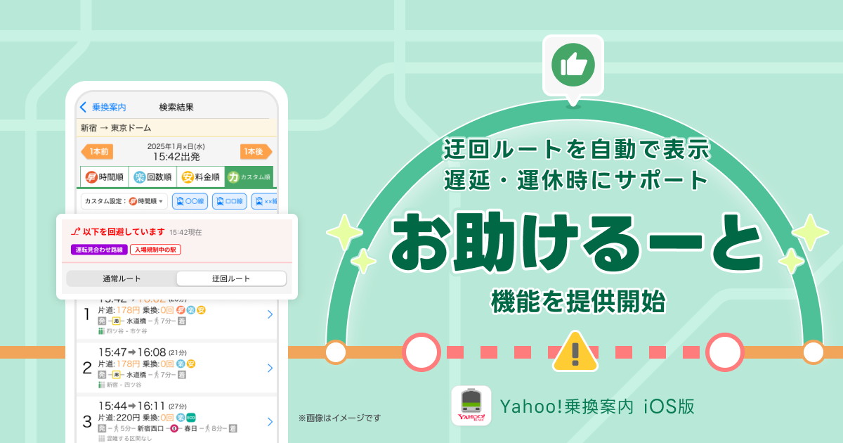 Yahoo!乗換案内、遅延など運行情報を地図上で表示
