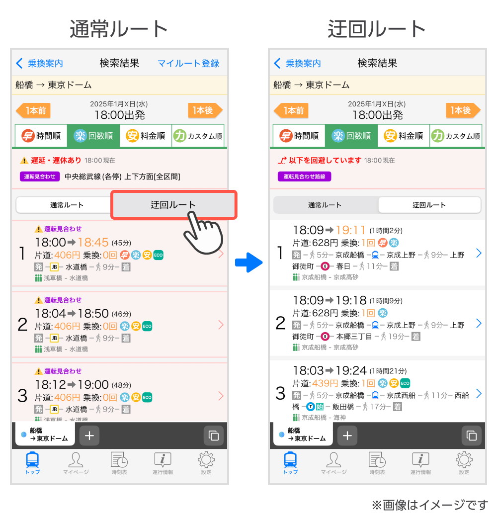 Yahoo!乗換案内、遅延など運行情報を地図上で表示