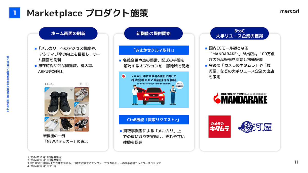• メルカリ、米国事業がブレークイーブン達成 第3四半期決算