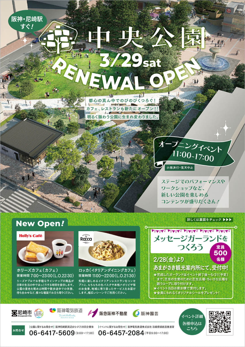 阪神尼崎駅前の中央公園リニューアル 飲食店など設置