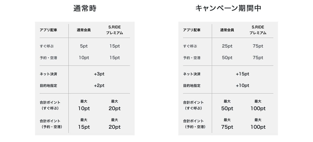 S.RIDE、ランク制導入 タクシーに乗るほどポイントアップ
