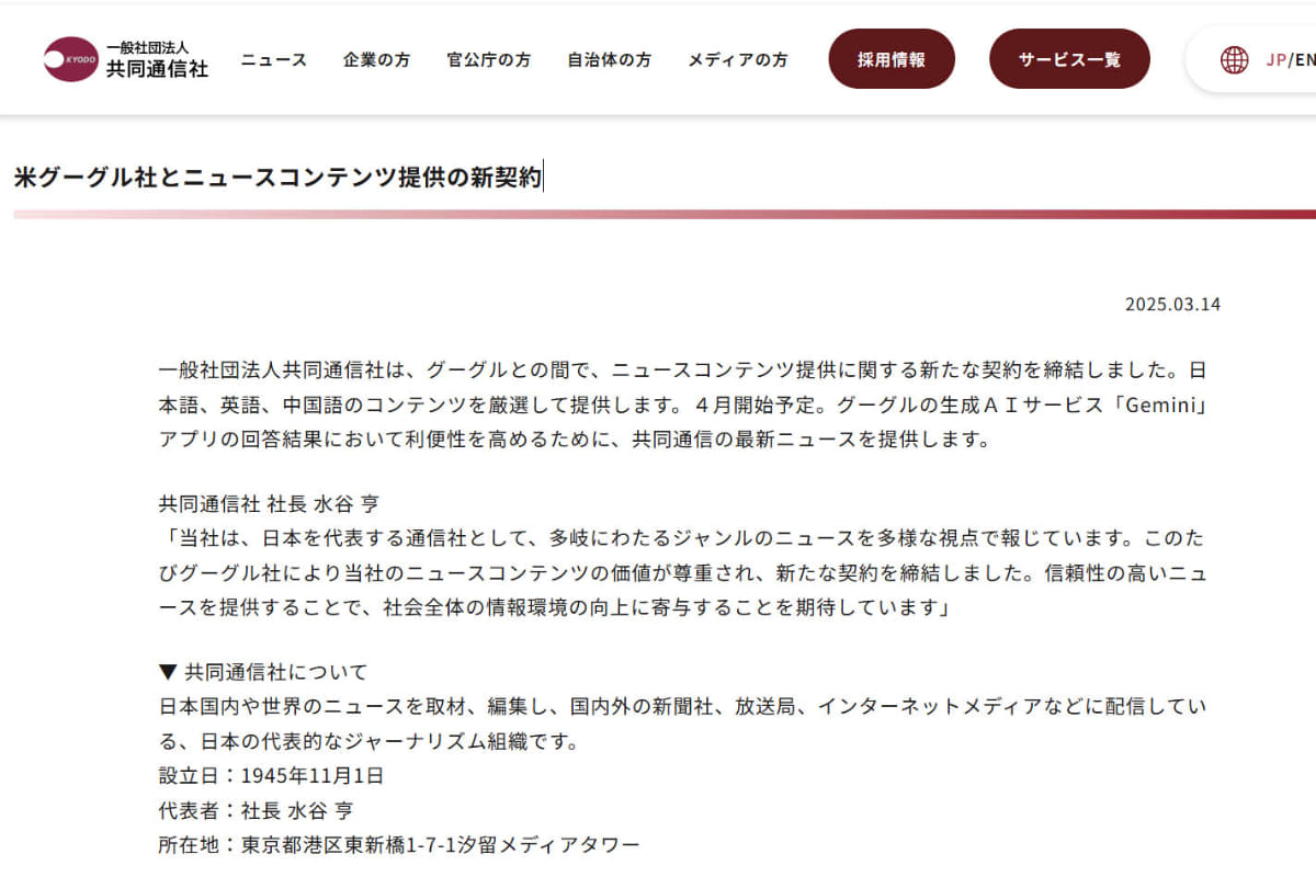 共同通信とソフトバンク、AIモデル用データセットなどで提携