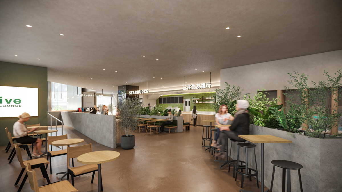 関西初「Olive LOUNGE 船場」 銀行・スタバ・シェアオフィス(2/6)