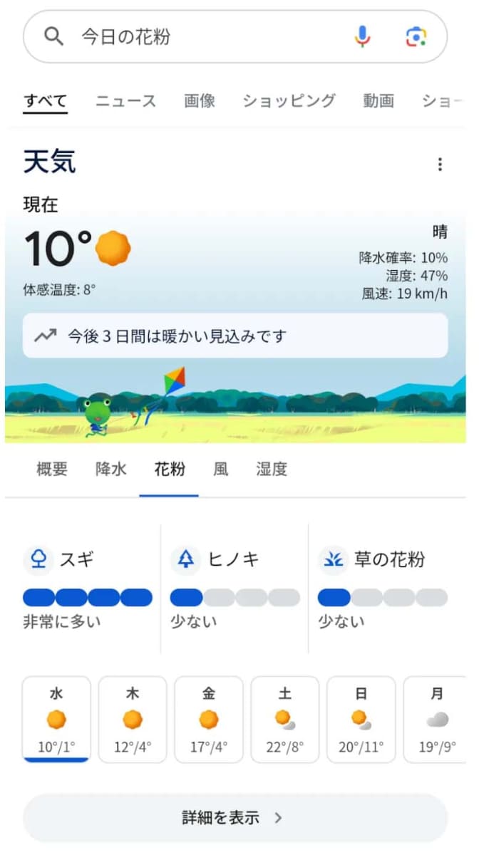 Google検索、花粉飛散予測を開始 スギ・ヒノキ・草