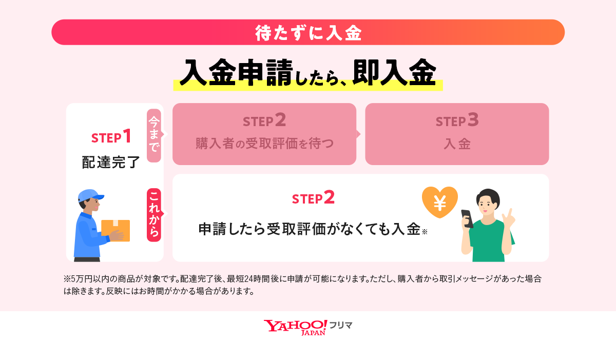 Yahoo!フリマ、「受取評価」前に売上金を受け取り可能に