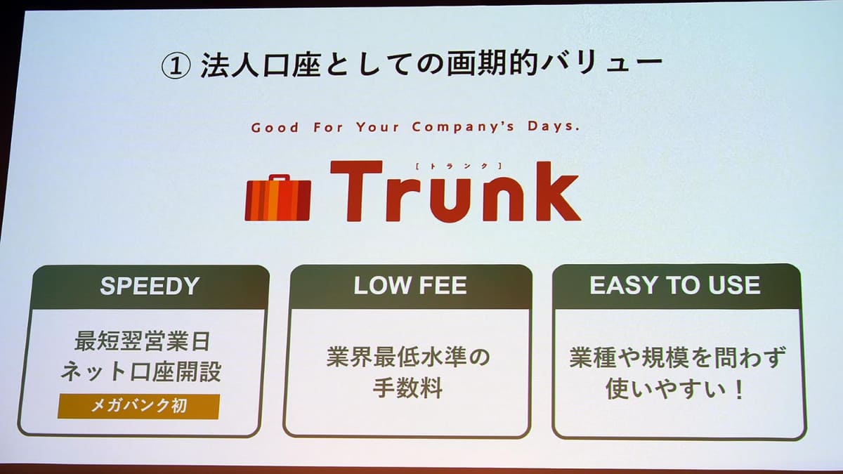 • 三井住友銀行、法人ネット口座「Trunk」スタート 安い・早いも訴求