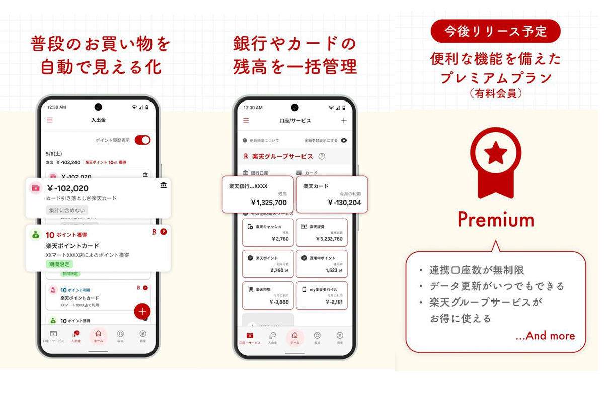 楽天家計簿、証券・年金などの資産管理に対応