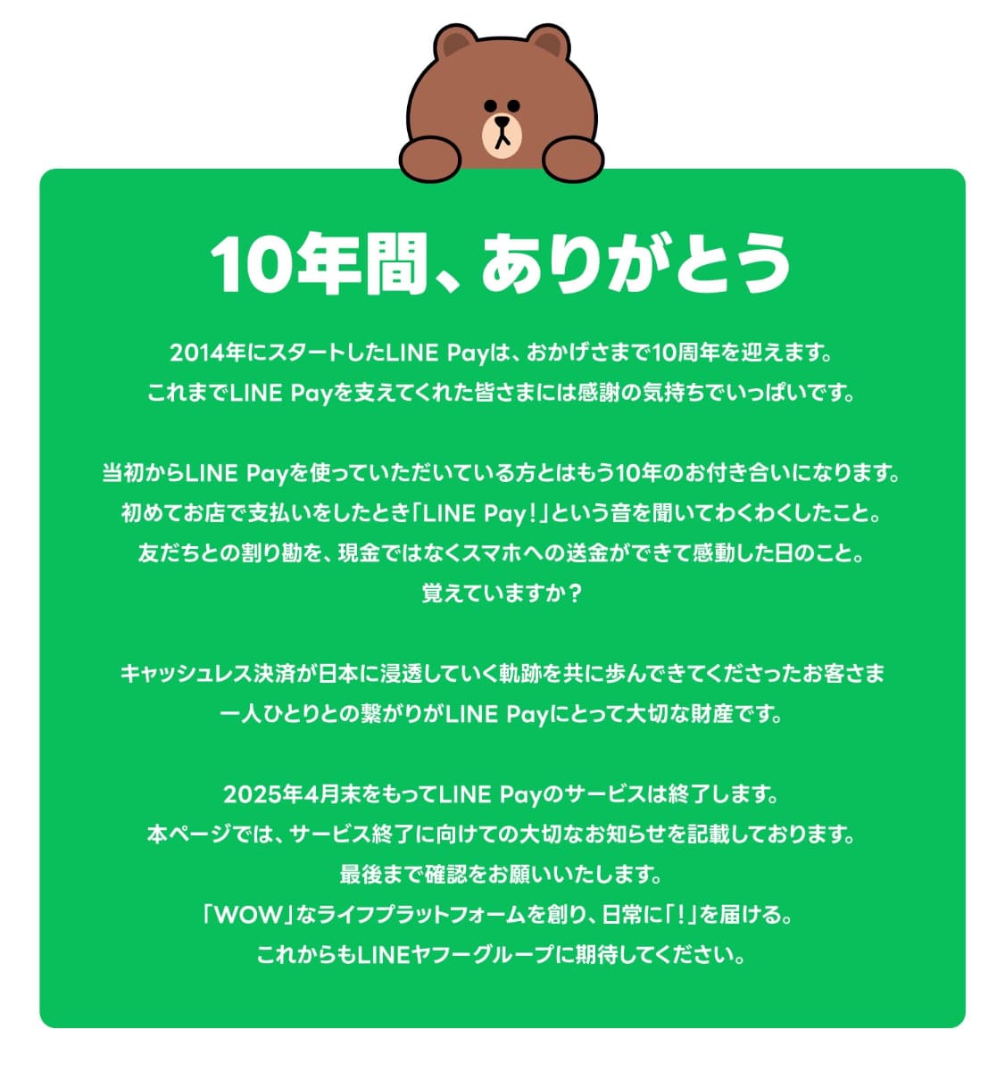 LINE Pay、ついに日本のサービスを終了 25年4月末