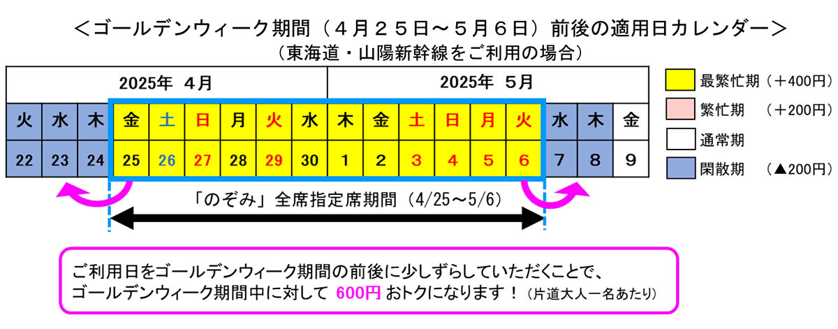 新幹線「のぞみ」、今年もGW・お盆・年末年始は全席指定