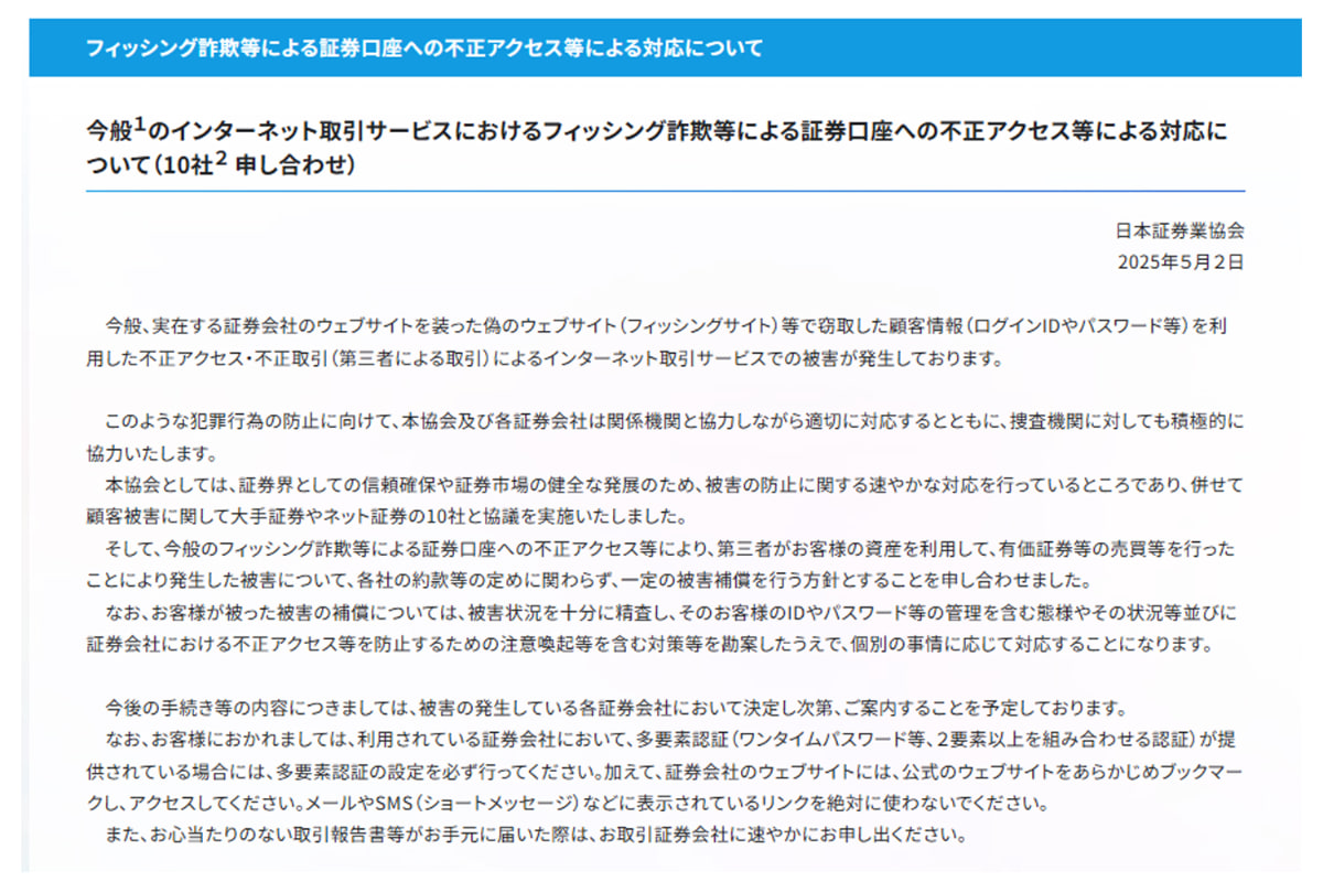 証券口座の不正アクセス対策、パスキーなどの多要素認証を必須化へ