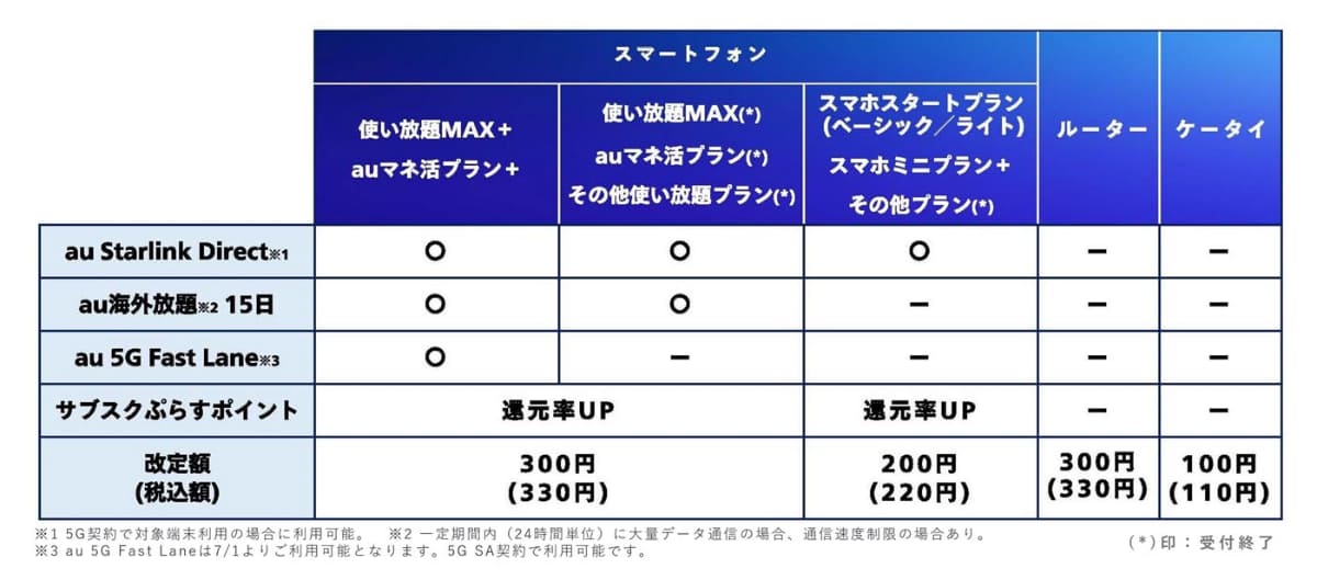 • au、スターリンク直接通信を他社ユーザーに開放 1650円