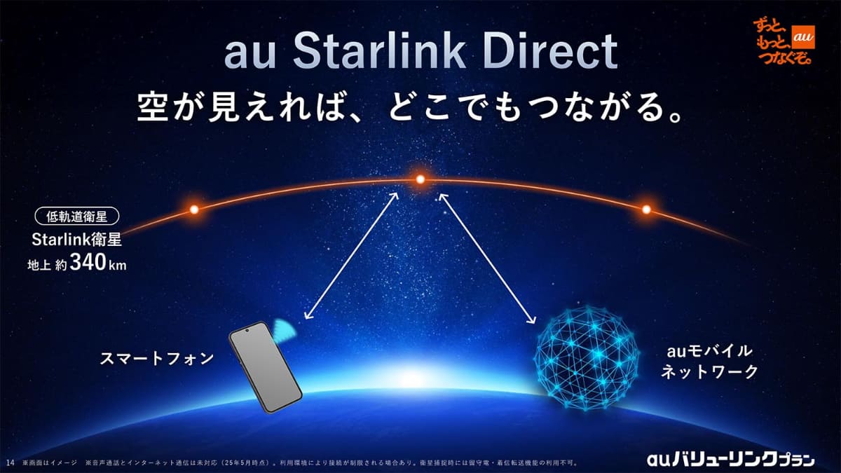 • au、全国カバーの衛星通信「Starlink Direct」 当面無料で全50機種対応