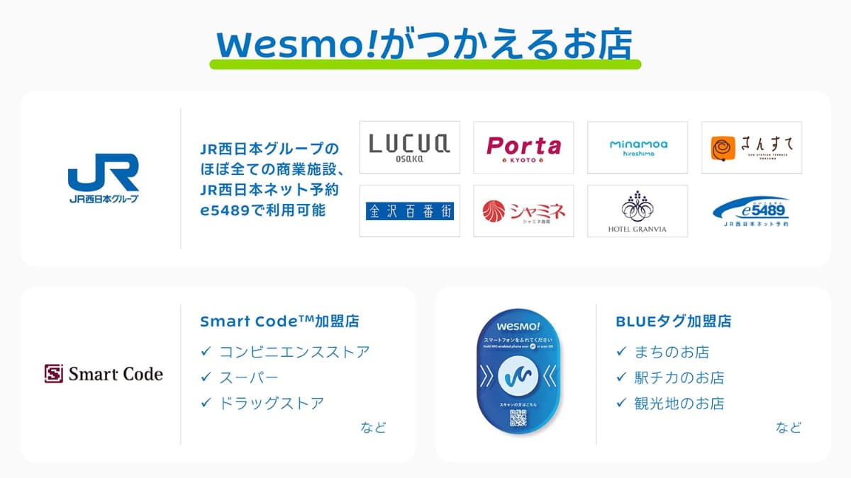 • JR西、新決済サービス「Wesmo!」まもなく開始 「BLUEタグ」でアプリ起動