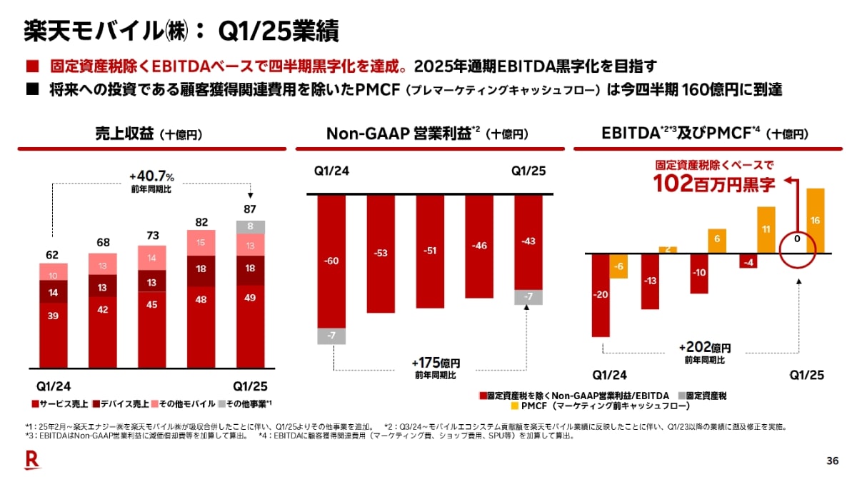 楽天、25年第1四半期は全セグメント増収 モバイル改善(4/9)