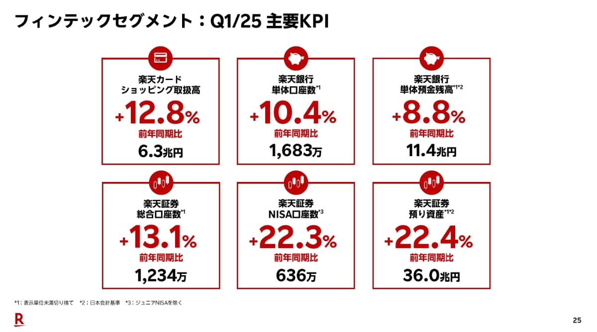 楽天、25年第1四半期は全セグメント増収 モバイル改善(8/9)