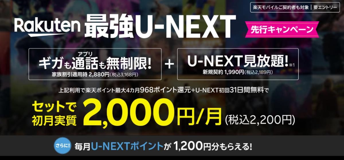 国内最強タッグの誕生 「Rakuten最強U-NEXT」10月スタート 4378円(7/20)