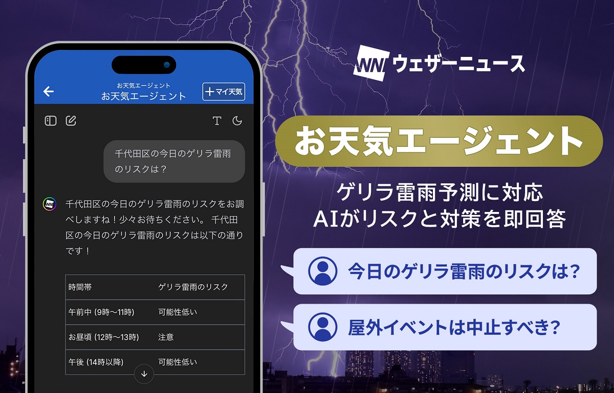 ウェザーニュース、天気の質問にAIが答える「お天気エージェント」