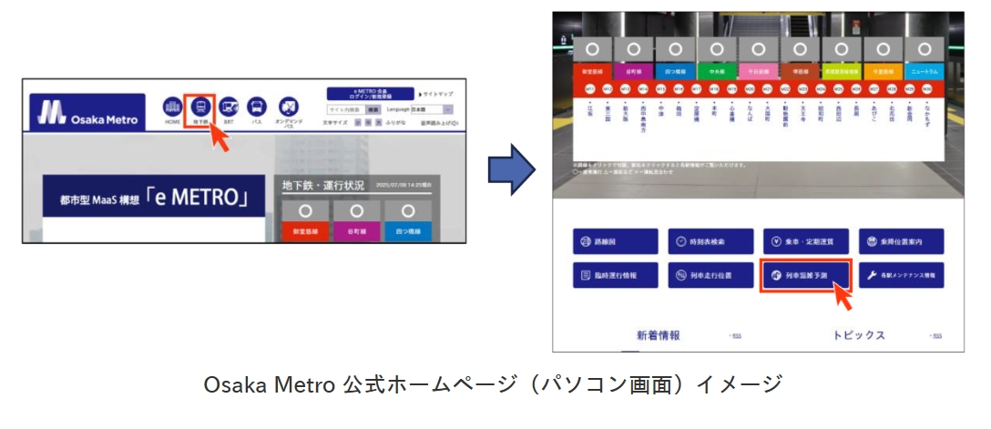 e METROアプリ、御堂筋線・中央線で混雑状況を見える化
