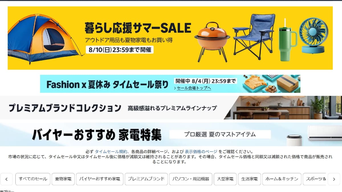 アマゾン、アウトドアや家電製品が安い「暮らし応援セール」 10日まで