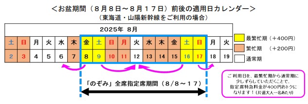 • 新幹線「のぞみ」、今年もGW・お盆・年末年始は全席指定