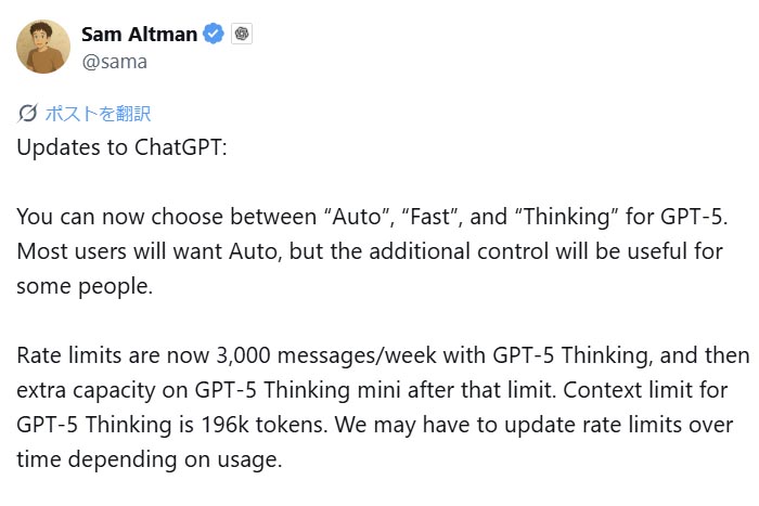 OpenAI、博士号レベルの「GPT-5」 コスト・速度・能力 全向上で「これ1つ」に