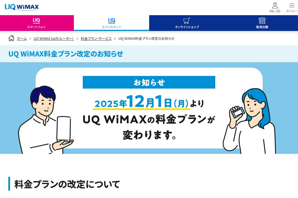 UQ mobile、旧プランを最大220円値上げ データは増量