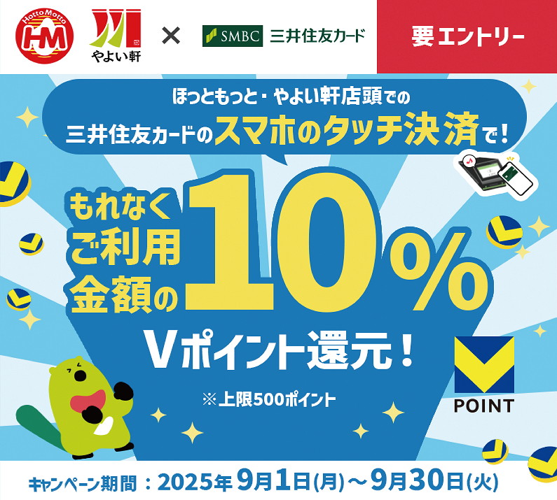 三井住友カード、ほっともっと・やよい軒で10%還元