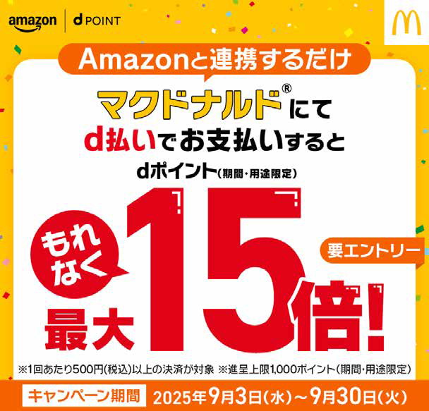 マクドナルドでd払い、Amazon連携でポイント15倍