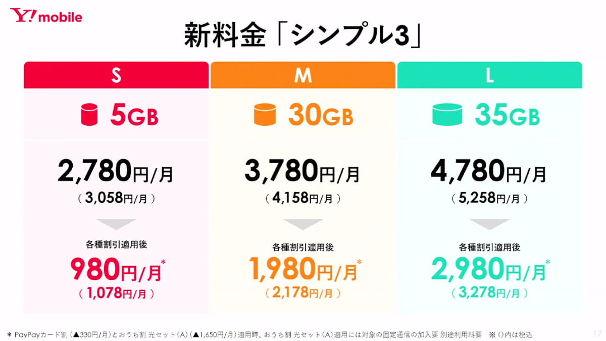 ワイモバイル、「シンプル2 M」データ容量が20GB→30GBに