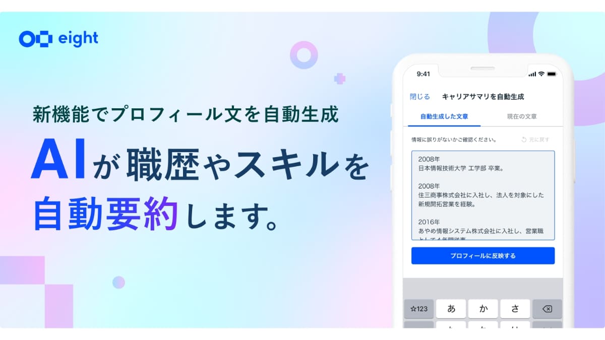 Eight、デジタル名刺交換を「エイト♪」の音と振動で通知