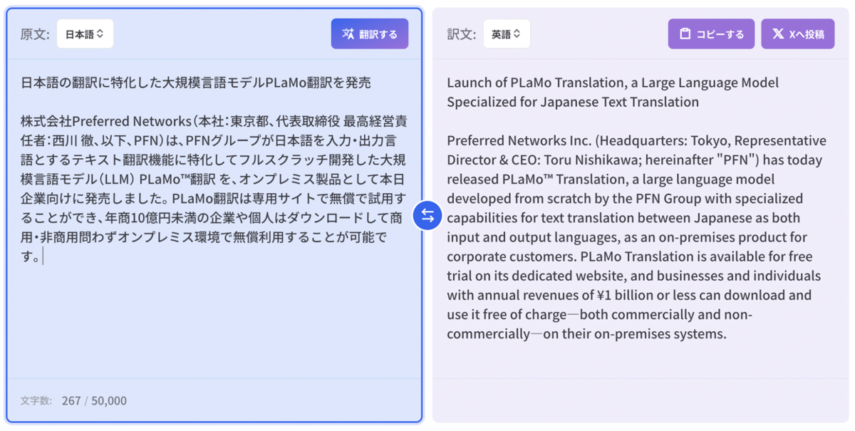 PFN、日本語翻訳特化LLM「PLaMo翻訳」 個人は無料