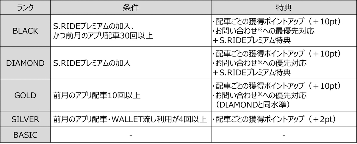 S.RIDE、ランク制導入 タクシーに乗るほどポイントアップ(4/5)