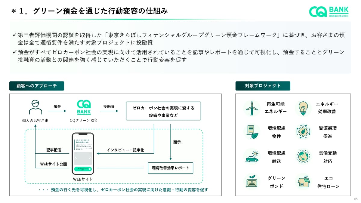 関西電力が銀行サービス「CQ BANK」 グリーン預金で脱炭素支援(2/4)
