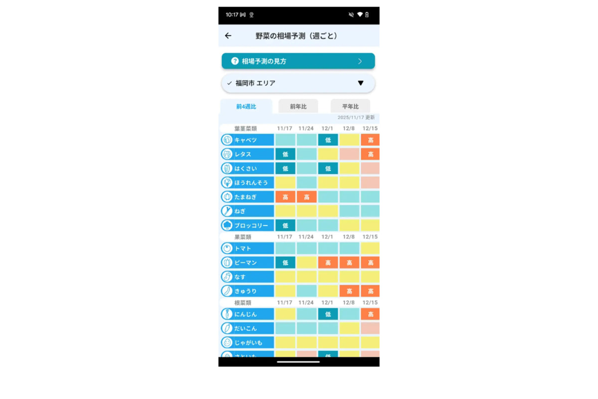 最大15週先の野菜価格を予測する「野菜の相場予測」 日本気象協会