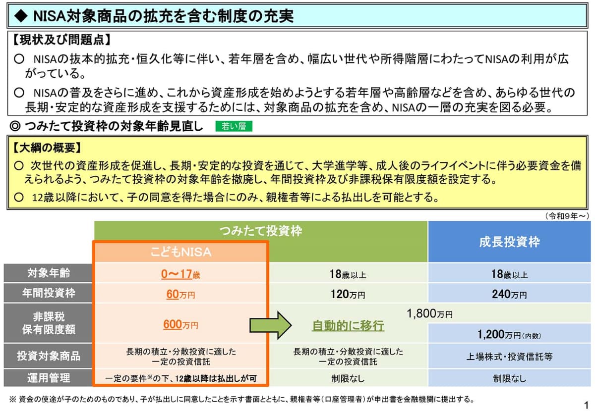 2027年「こどもNISA」開始 NISA対象も拡充 税制改正大綱