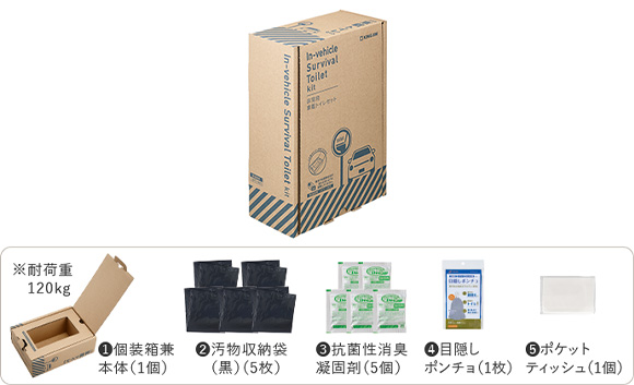 キングジム、車載用災害対策セット。立ち往生や渋滞に使えるトイレ×3