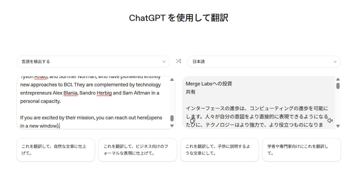 ChatGPTに翻訳専用機能 「ChatGPT Translate」が密かに公開