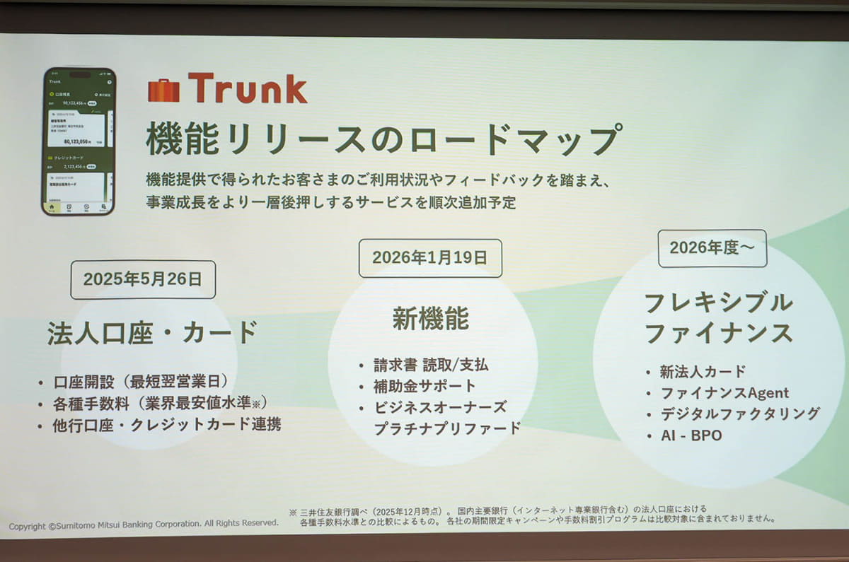 三井住友銀行、法人ネット口座「Trunk」スタート 安い・早いも訴求