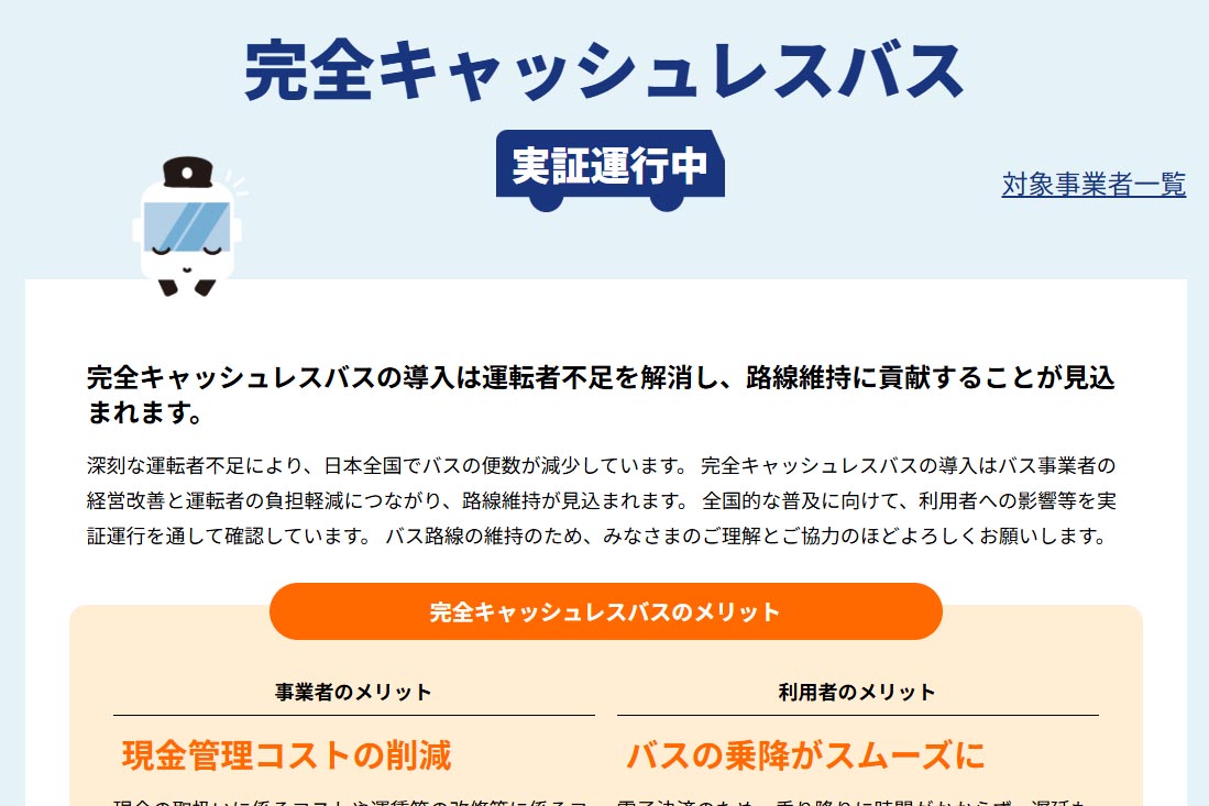 完全キャッシュレスバス実現へ 秋に約10路線で実証運行