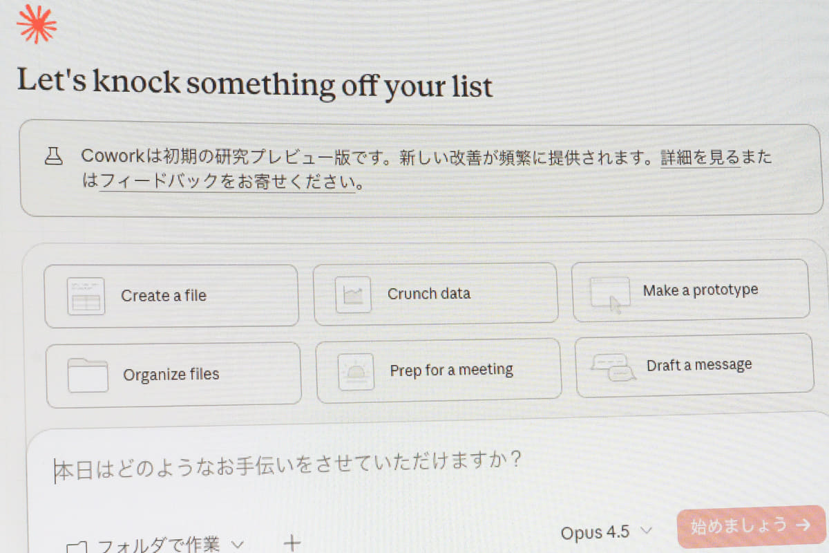 Anthropic、Claudeが自律的に作業を代行する「Cowork」