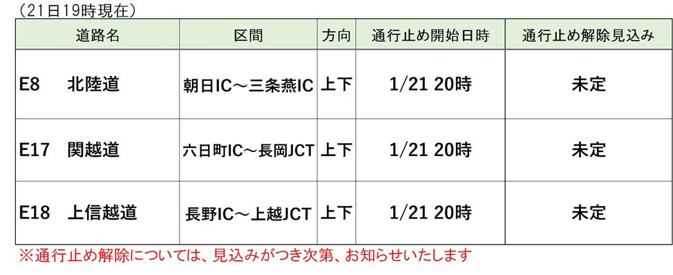 21日夜から大雪、一部高速道路で予防的通行止め 物流にも影響