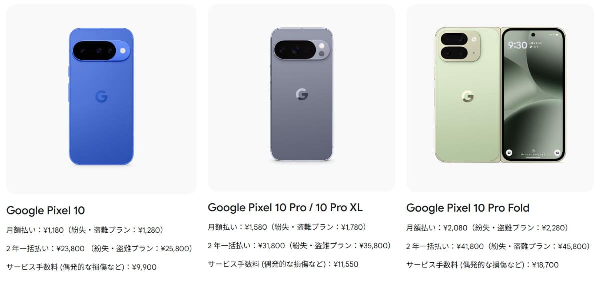 グーグル、正規保証サービス「Pixel Care+」開始 Pixel 10は月1180円(2/4)