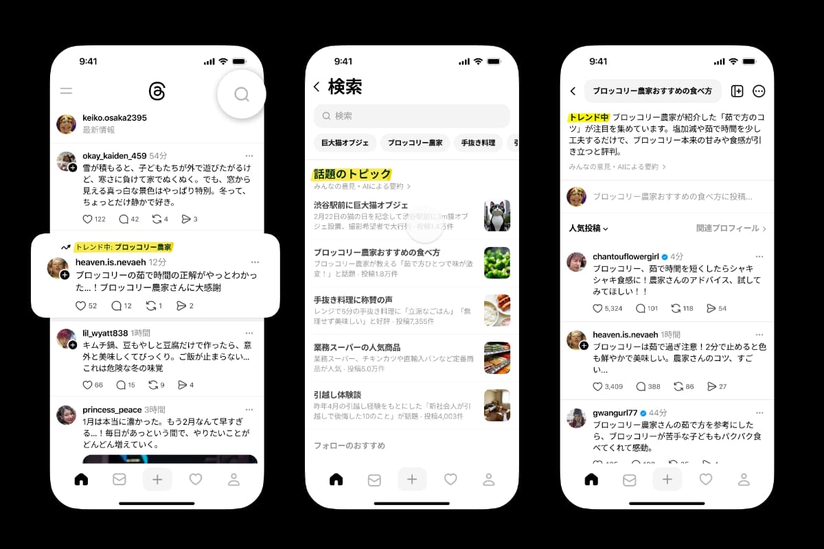 Threads、トレンドランキングのテスト AI活用し5つをピックアップ