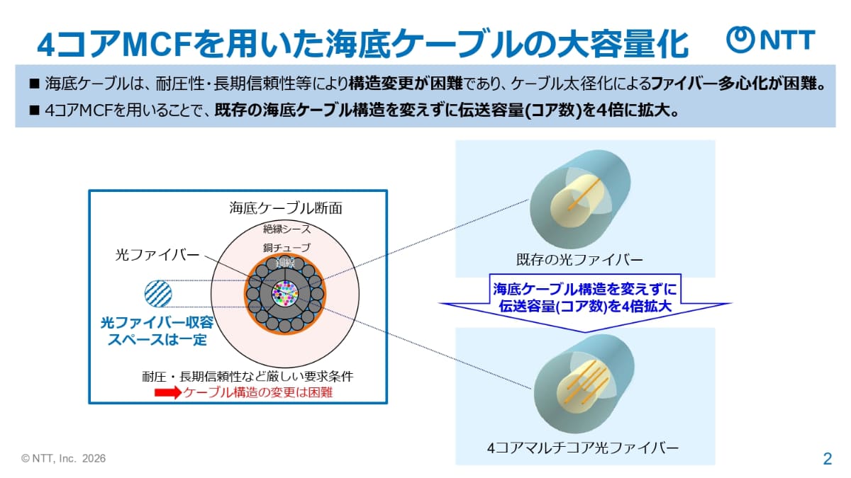 NECとNTT、12コア光ファイバーで7000kmの長距離伝送に成功 世界初
