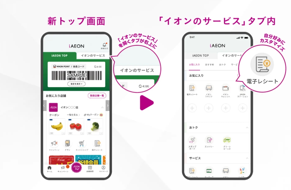 iAEONリニューアル、トップ画面に会員コード常時表示