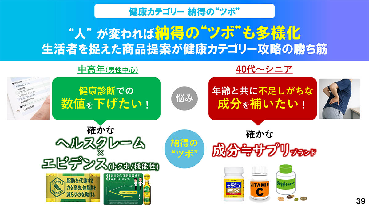 サントリー、ペットボトル飲料サプリ「ロコモア」「セサミン」
